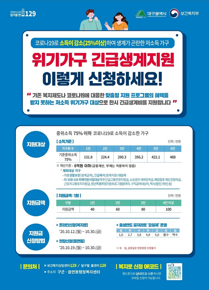 | ▲ 위기가구 긴급생계지원 홍보 포스터. (자료=대구시 제공) |