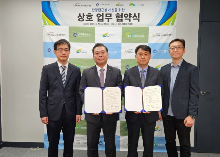 공사는 28일 오전, 서울 강남에 위치한 GKL사회공헌재단 대회의실에서 개발대상지 확정에 따라 해당 기관과의 업무협약을 체결했다. 이번 협약은 관광약자 대상, 여행 및 콘텐츠 개발을 통해 문화ㆍ관광 향유권을 보장하고 누구나 접근할 수 있는 관광 환경을 조성하기 위해 마련됐으며, 공사와 GKL사회공헌재단은 지난 4월, 도내 자연 관광지를 중심으로 후보지 4곳을 평가, ▲‘여주시 황학산 수목원’과 ▲‘양평군 국립양평치유의 숲’ 2곳을 최종 사업 대상지로 선정했다.