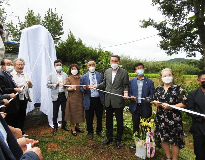| ▲향토시인 故 박문신 시비 제막식이 김석환 홍성군수와 충남문협 회원 다수가 참석한 가운데 열리고 있다. (사진=충남문인협회 제공) |