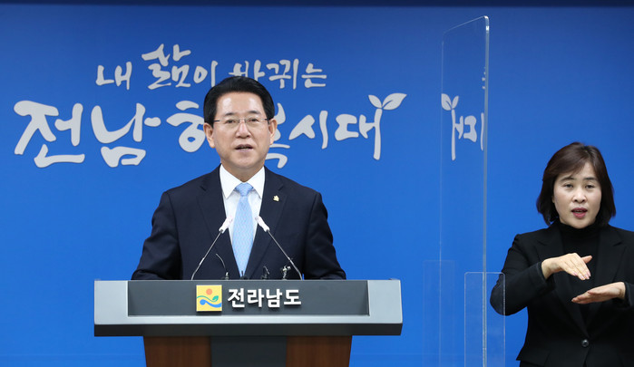 | ▲ 김영록 전남도지사가 내년도 국고예산 확보 결과 관련 e-브리핑을 진행하고 있다.(사진=전남도) |