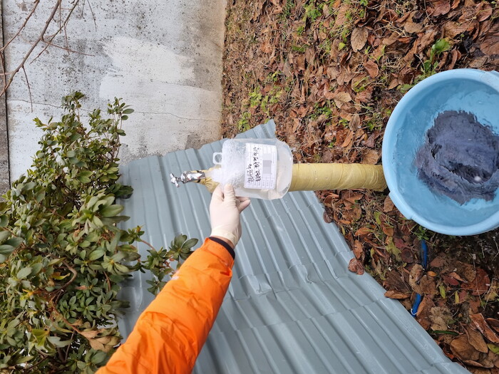 | ▲먹는물 수질검사기관의 연구원이 수질검사를 하기 위해 채수하고 있는 모습(사진=화순군) |