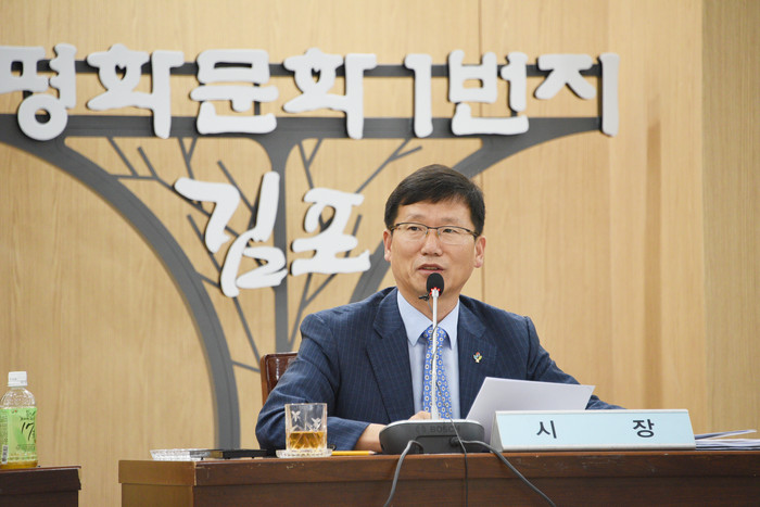 | ▲ 유영록 김포시장이 고촌읍 전호리 한국마사회 장외발매소 추진사업 철회를 발표하고 있다. <사진제공=김포시청> |