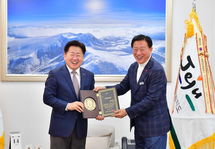 [세계로컬타임즈 이남규 기자] 장성군은 지난 14일 제주특별자치도청에서 오영훈 도지사에게 ‘명예 군민패’를 전달했다.