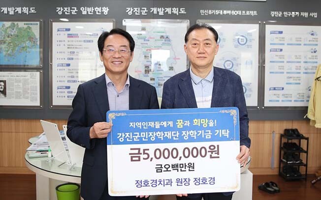 정호경 원장은 “항상 지역 인재들이 강진의 희망이 되길 바라는 마음으로 장학금을 기탁해왔다”며 “어려운 여건 속에서도 꿈을 잃지 않는 학생들에게 작게나마 도움이 됐으면 한다”고 기탁 소감을 밝혔다.