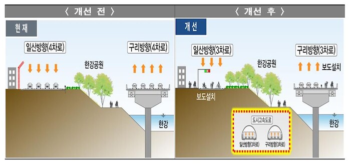 올해는 강변북로 재구조화 타당성 조사 및 기본계획 용역을 진행하고, 내년에는 국제경쟁력 강화를 위한 한강변 공간구상 용역 및 강변북로 재구조화 교량 연결체계 개선할 예정이다. 2024년 이후 투자심사 결과에 따라 설계 및 공사를 추진할 예정이다.