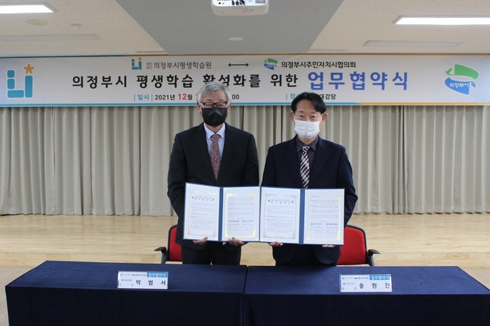(재)의정부시평생학습원 대강당에서 열린 이날 업무협약은 송원찬 평생학습원장과 박범서 의정부시주민자치시협의회장이 참석해 협약서에 서명했다.
