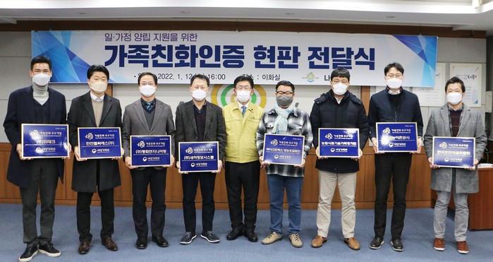 | ▲나주시는 지난 12일 청사 이화실에서 가족친화인증 신규, 재연장 기관·기업 8개소에 인증 현판을 수여했다.(사진=나주시) |