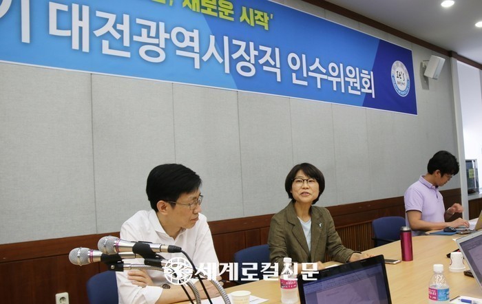 24일 허태정 대전시장 인수위는 대전 중구 옛 충남도청에 마련된 인수위 회의실에서 민선 7기 대전시장 인수위원회 중간 언론브리핑을 열었다.