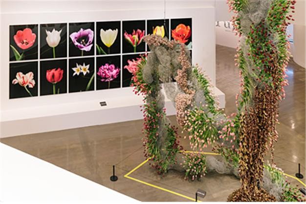 식물문화센터 2층에서 진행 중인 전시(사진 아래)에서는 튤립 사진 42점과 함께 튤립의 생장주기를 표현한 대형 조형물 '튤립 샹들리에' 등 총 43점의 작품을 만날 수 있으며, 4월17일까지 열린다.