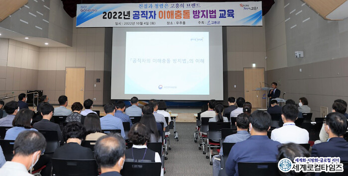 [세계로컬타임즈 조주연 기자] 전남 고흥군이 4일 전 직원을 대상으로 ‘공직자의 이해충돌방지법’ 청렴 교육을 실시했다.