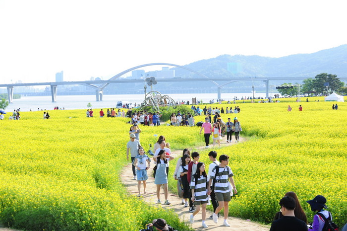지난 토평동 한강시민공원 일원 2만5000㎡ 규모에 조성한 유채꽃 단지는 수도권 최대규모로써 시골풍경에 대한 추억과 도심 속 자연의 고즈넉함을 연상하는 자연 친화적인 풍경을 연출하며 시민들이 이곳 풍광을 카메라에 담아가도록 했다.