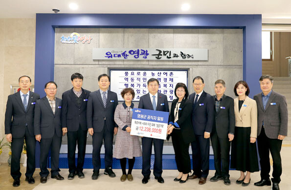 9일 영광군에 따르면 2월17일부터 28일까지 실시한 성금 모금에 강종만 군수를 비롯한 1,000여 명의 영광군청 직원들이 참여했으며, 모아진 성금 1천2백여만원을 지난 7일 전남공동모금회에 전달했다.