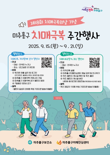 첫 번째는 모바일 걷기 플랫폼 ‘워크온’ 앱을 활용한 ‘2025 미추홀구 치매 극복, 가치 함께 걷기 챌린지’다.