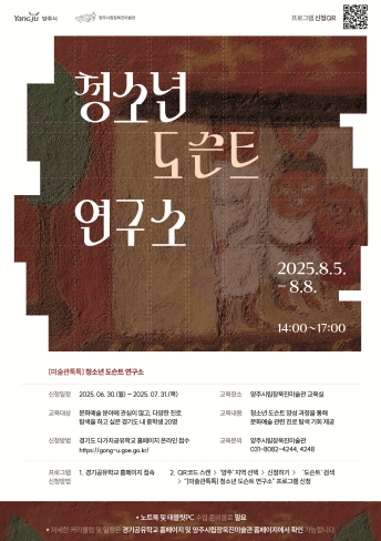 교육은 오는 8월 5일부터 8월 8일까지 총 4회에 걸쳐 ‘양주시립장욱진미술관 교육실’에서 진행되며 매일 오후 2시부터 5시까지 운영된다.