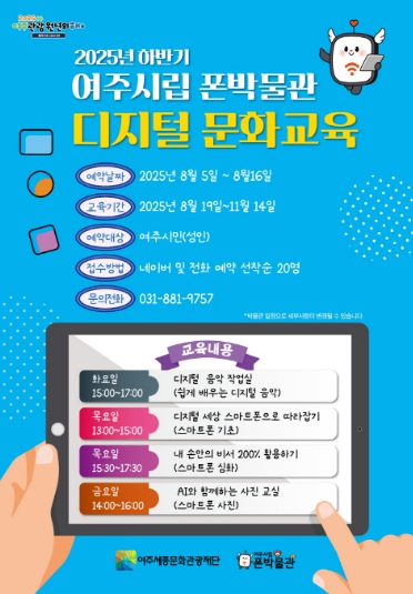 이순열 여주세종문화관광재단 이사장은 “이번 교육은 단순한 기술 습득을 넘어, 시민들이 디지털 세상을 보다 친근하게 이해하고 활용할 수 있도록 기획했다”라며, “일상 속에서 바로 써볼 수 있는 실습을 통해 디지털 문화와 한층 가까워지는 계기가 되길 기대한다”라고 전했다.