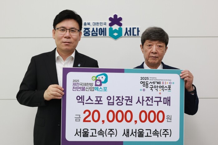 이날 협약식에는 이동옥 충청북도 행정부지사와 임충성 서울고속㈜·새서울고속㈜ 전무이사가 참석한 가운데 2,000만원 상당의 양대 엑스포 입장권을 구매를 협약했다.