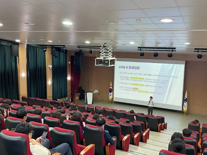 이번 교육은 젠더십향상교육원 유정흔 원장이 ▲성희롱 예방과 성인지감수성 ▲성폭력 예방과 성인권 의식 ▲딥페이크 등 디지털 성범죄 예방 ▲최근 공공부문 성비위 이슈 등을 주제로 진행됐다.