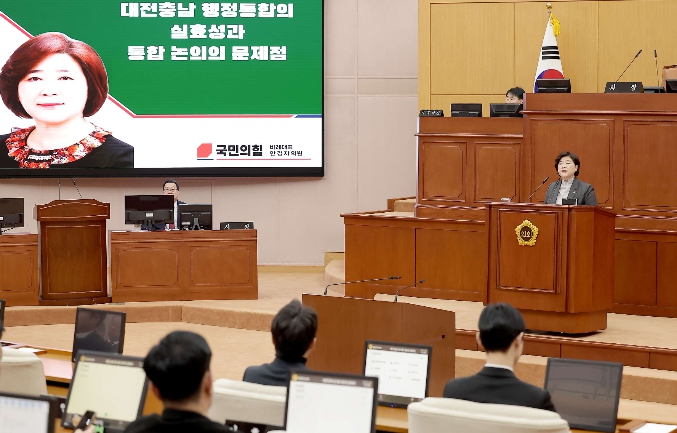 안경자 의원은 “대전·충남 행정통합이 지방소멸 대응과 국가균형발전의 해법으로 제시되고 있으나, 그 실효성과 추진 과정 모두에서 심각한 문제점을 안고 있다”며 발언을 시작했다.