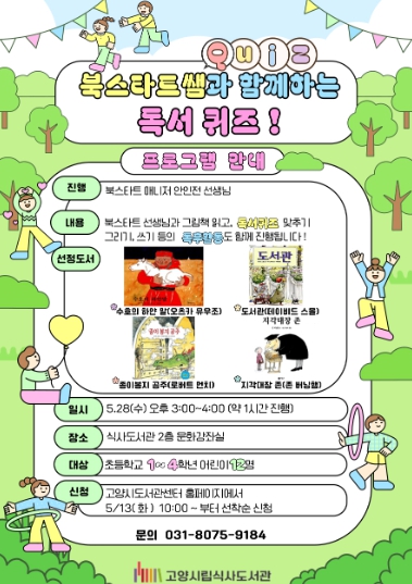 프로그램은 초등학교 아이들이 다양한 독후활동을 통해 독서에 흥미를 느낄 수 있도록 돕기 위해 기획됐으며, 5월 28일 오후 3시부터 4시까지 식사도서관 2층 문화강좌실에서 약 1시간 동안 진행된다.