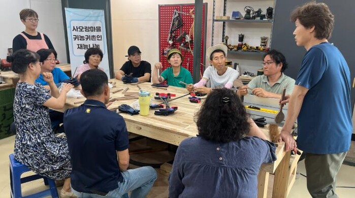 프로그램에는 귀농귀촌인과 마을 주민 10명이 함께 참여해 우드카빙을 활용한 생활소품 제작과, 폐파렛트를 재활용한 업사이클링 작업 등 공동체 공간을 직접 꾸미는 활동을 통해 소통과 협력을 다진다.