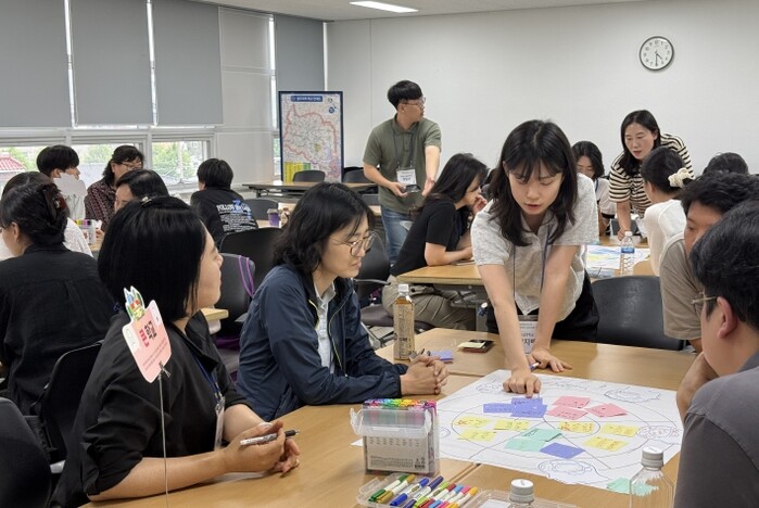 워크숍에서는 퍼실리테이션 기법을 적용한 참여 중심 활동이 진행됐으며, 교사들은 각자의 학교에서의 우수 사례와 어려웠던 경험을 나누고, 그 과정을 통해 서로의 실천을 되돌아보며 아이디어를 확장해 나갔다. 이후 분임 간 순환 탐방을 통해 다양한 관점에서의 학생자치 운영 방안을 공유하고, 이를 바탕으로 2학기 실천계획을 구체화하는 시간을 가졌다.