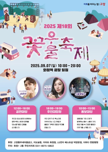 이번 축제는 광복 80주년을 기념해 화정1동 주민자치회와 화정2동 주민자치회가 공동 주최하며 ‘제18회 꽃우물축제’와 ‘2025 화정 주민문화제’가 결합한 옴니버스 축제(omnibus festival) 형식으로 진행된다.