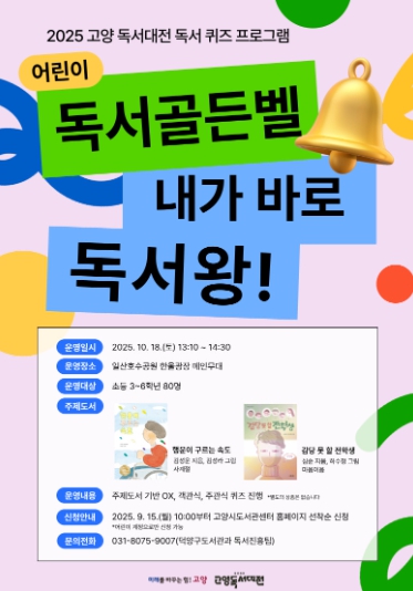 이번에 기획한 ‘어린이 독서골든벨’은 ‘2025 고양시 올해의 책’과 연계해 지역 사회 내 ‘같은 책 읽기’ 문화 확산과 어린이 독서 습관 형성을 위해 마련됐다.