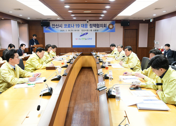 | ▲ 안산시는 코로나 19 대응 정책협의회를 열고 있다. (사진=안산시 제공) |