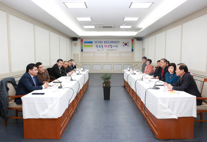 | ▲ 대구 서구청,우즈베키스탄실크산업부 차관 등 수출계약을 위한 간담회 모습. (사진=대구 서구청 제공) |