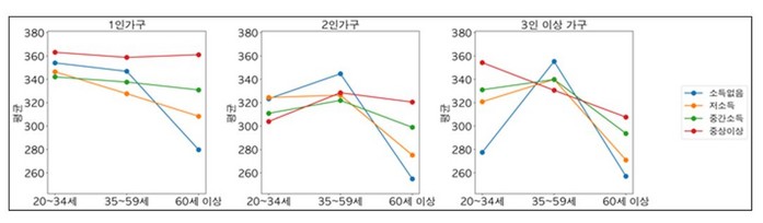 이번 가명데이터 결합 분석결과는 가구형태별 다차원 비교를 위해 청년층(20~34세)·중장년층(35~59세)·고령층(60세 이상)으로, 소득은 소득없음·저소득층(3,000만 원 이하)·중간소득층(3~7,000만 원 이하)·중상이상 소득층(7,000만 원 초과)으로 분류했다.