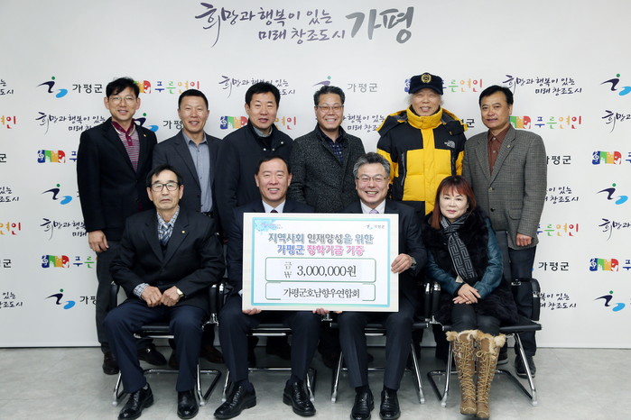 이들 회원들은 가평군에 도움이 될 사업을 고심하다 지역의 미래를 이끌어갈 인재양성을 위해 지원키로 하고 군에 장학기금을 기탁한 것이다.