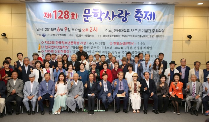 | ▲ 9일 대전 한남대학교에서 열린 제128회 문학사랑 축제를 마치고 기념활영을 하고 있다. |