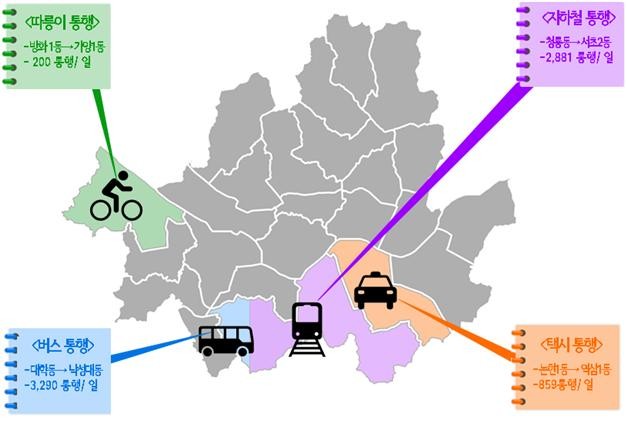 | ▲교통수단별 행정동별 최다 통행경로 (자료=서울시 제공) |