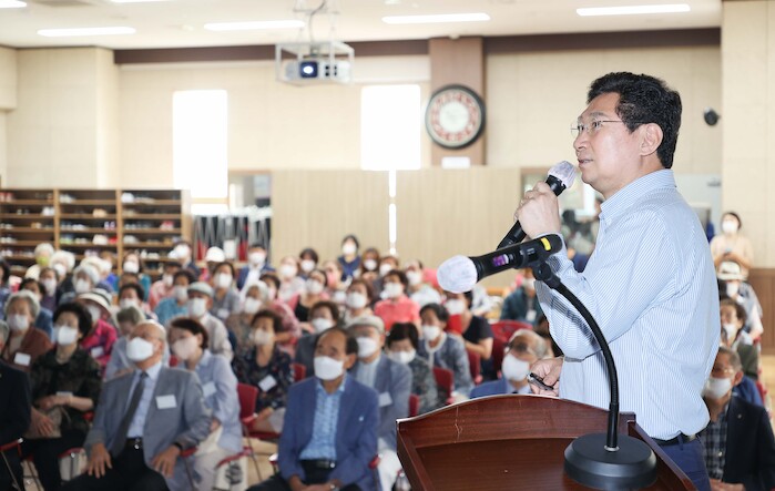 | ▲ 이상일 용인시장이 용인시기흥노인복지관에서 특강을 하고 있다. (사진=용인시) |