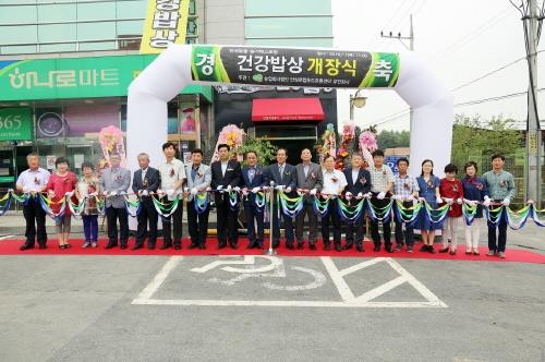 ▲ 지난 7일 안성시 공도읍 안성인삼농협에서 관계자들이 로컬푸드 농가레스토랑을 개장식을 진행하고 있다.<사진제공=안성시청> |