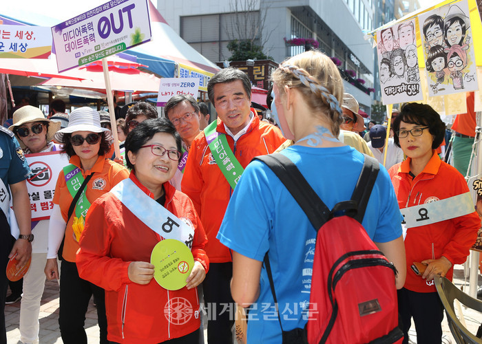 [세계로컬신문 조주연 기자] 정현백 여성가족부 장관이 19일 오전 충남 보령 대천해수욕장을 찾아 불법촬영 성범죄 근절 캠페인을 펼쳤다.