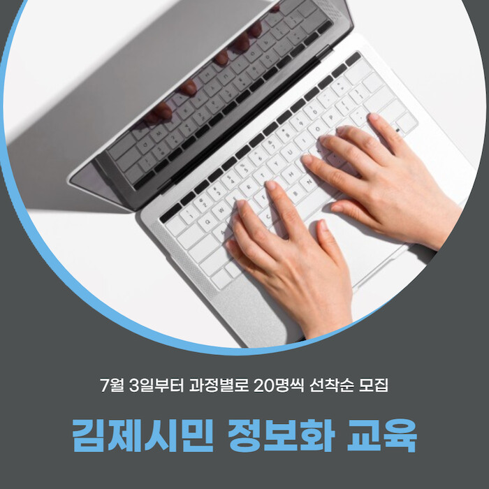 21일 김제시에 따르면 시민정보화교육은 7월 3일부터 과정별로 20명씩 선착순 모집하며 김제시민이라면 누구나 무료로 수강할 수 있다.