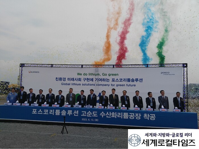 [세계로컬타임즈 김명진 기자] 전라남도는 13일 율촌 제1산단에서 이차전지 핵심소재인 수산화리튬을 생산하는 5천751억 원 규모의 ‘포스코리튬솔루션 율촌산단 수산화리튬공장 착공식’을 개최했다고 밝혔다.