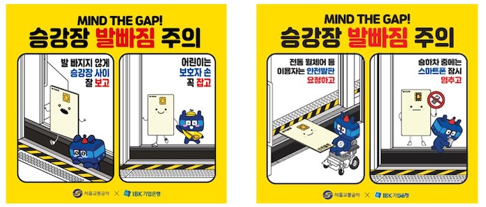 [세계로컬타임즈 이효진 기자] 서울교통공사(이하, ‘공사’라 함)와 IBK기업은행(이하, ‘IBK’라 함)이 지하철 승강장 발빠짐 사고 예방을 위한 업무협약을 체결, 사고 다발역 승강장안전문 하단부와 승강장 바닥에 ‘발 빠짐 주의’ 홍보물을 부착하는 등 공동으로 노력한다.