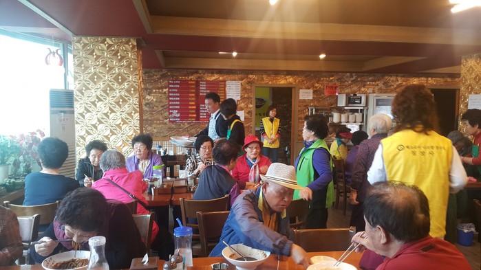 | ▲ 경기도 안성시 죽산면 시내에 위치한 모 중국집에서 봉사자들이 지역 어르신들에게 자장면을 대접하고 있다. <사진제공=안성시청> |