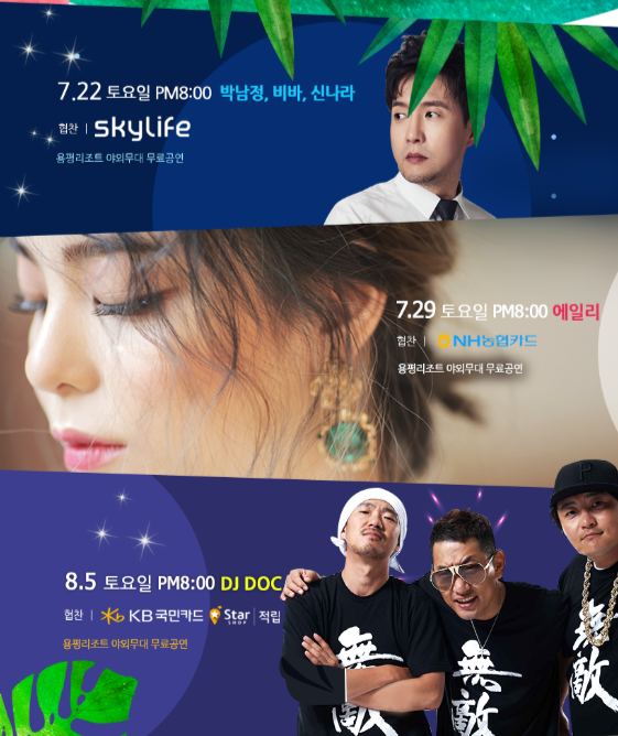 강원도 평창군 대관령에 위치한 용평리조트는 여름 휴가철을 맞아 7월과 8월 중 다채로운 무료콘서트 행사를 진행한다고 밝혔다.