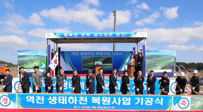 | ▲ 충남 당진시가 16일 역천 생태하천 복원사업 기공식을 개최하고 있다. |
