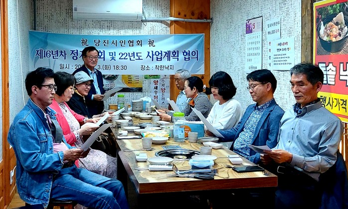 [세계로컬타임즈 홍윤표 조사위원] 당진시에서 활동하는 당진시인협회는 지난 3일 착한낙지에서 제16차 정기총회 및 22년도 문학사업을 위한 협의회의가 회원다수 참석한 가운데 개최됐다고 4일 밝혔다.