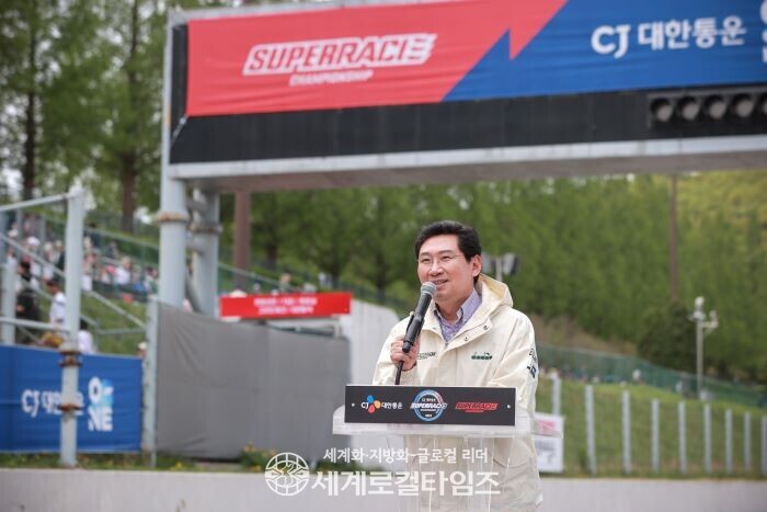 이 시장은 개막사에서 “많은 분들의 사랑을 받는 대한민국 최고의 모터스포츠 대회인 ‘CJ대한통운 슈퍼레이서 2023’ 시즌 개막을 우리 용인에서 하게 돼 시장으로서 진심으로 환영한다”며, “이번 챔피언십 슬로건이 '슈퍼 익사이팅, 슈퍼레이스(SUPER EXCITING, SUPERRACE)'이니 경기에 참가하는 선수들이 그동안 갈고 닦은 기량을 충분히 발휘해 정말 익사이팅한 레이스를 펼쳐줄 것으로 기대한다”고 말했다.