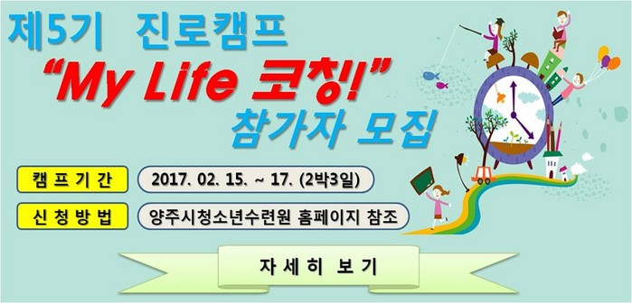 | ▲ 양주시청소년수련원 진로프로그램 My life 코칭참가자 모집 안내문.<사진제공=양주시청> |