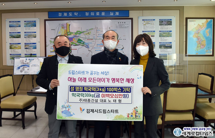 [세계로컬타임즈 조주연 기자] 전북 김제시 소재의 ㈜태종건설이 ‘드림스타트’ 아동들을 위해 300kg 분량의 떡국 떡을 기탁했다.