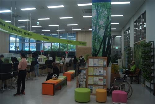 이 밖에 민원인의 프라이버시 보호를 위해 창구별로 칸막이를 설치했으며 내부 공간과 비품들 역시 원목 스타일과 녹색 계열로 완성해 심리적 안정감을 도모하고 시각적으로도 편안함이 느껴질 수 있도록 했다.