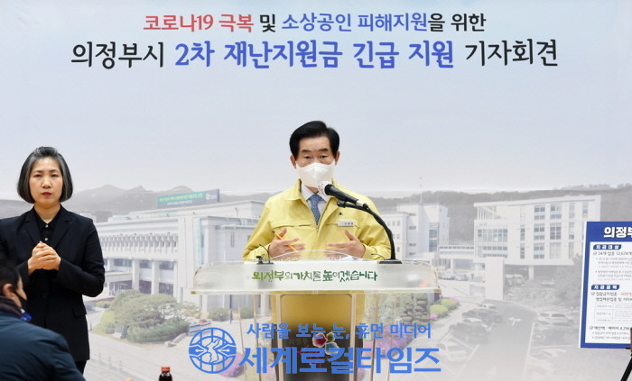 [세계로컬타임즈 신선호 기자] 안병용 의정부시장은 방역강화 및 소상공인 피해 지원을 위한 의정부시 재난지원금(2차) 긴급 지원 기자회견을 가졌다.