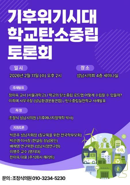 좌장은 조정식 성남시의원(기후에너지정책학 박사)이 맡는다.