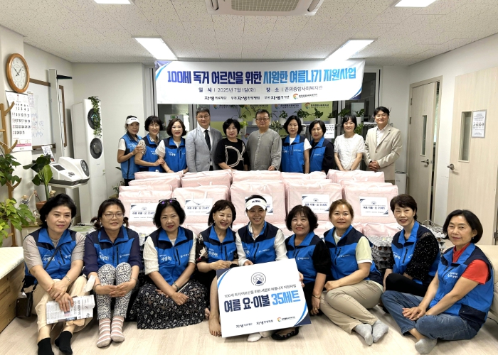 100세를 넘긴어르신의 눈가에 고마움이 어렸다. 지난 1일, 춘의종합사회복지관은 부천자생의료재단 임직원 및 부천자생봉사단과 함께 지역 내 장수 어르신들을 위한 ‘시원한 여름나기 지원사업’을 진행했다. 이날 복지관 1층에서는 여름 이불 전달식을 시작으로, 자원봉사자들이 직접 어르신 가정을 찾아가 이불과 달걀을 전달하고, 거동이 불편한 분들을 위해 집 안 청소까지 도왔다.